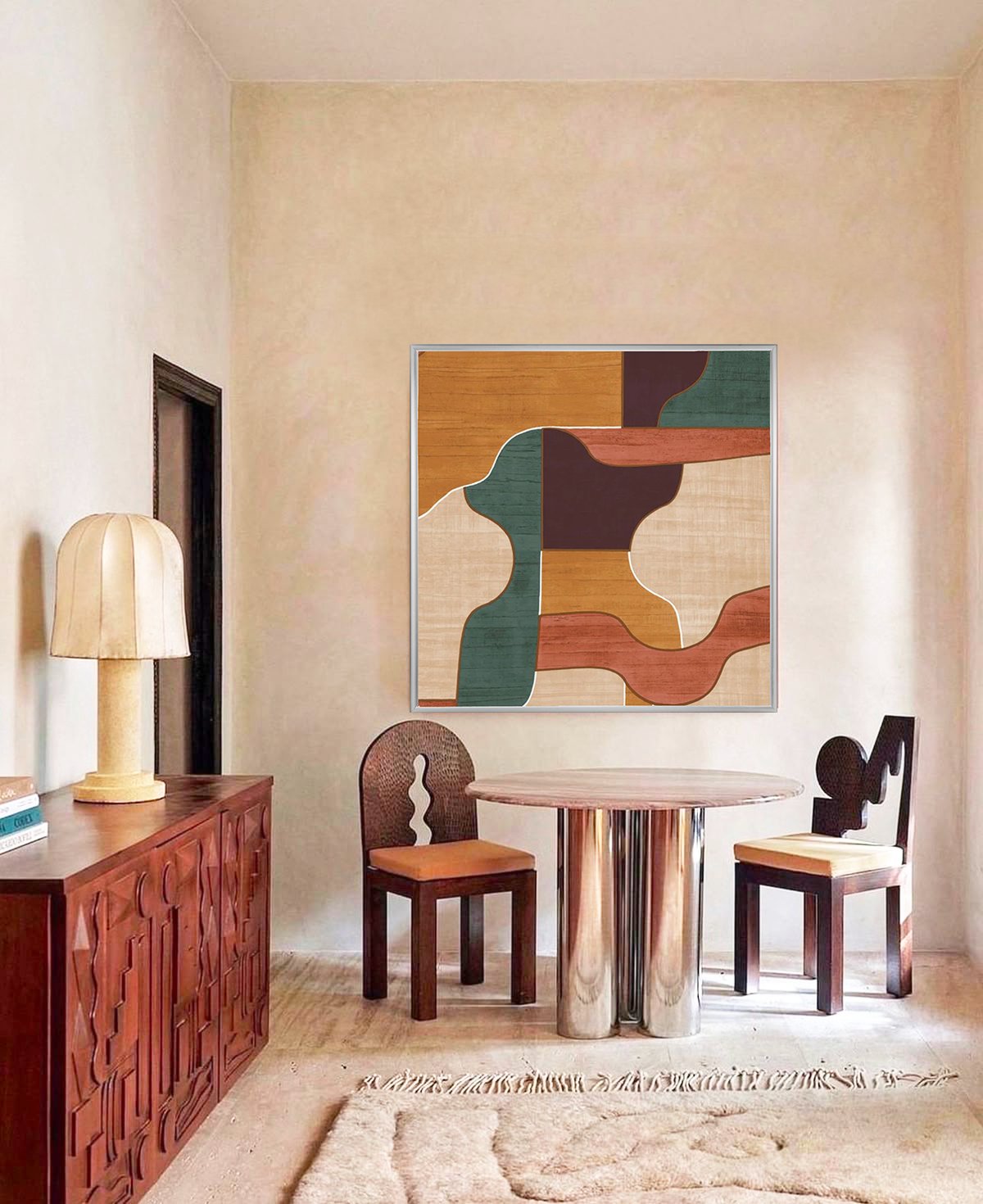 MADERA met en scène des courbes qui se rencontrent, des fragments qui s’assemblent comme une danse organique. Le motif puise dans l’esprit du modernisme brésilien, où